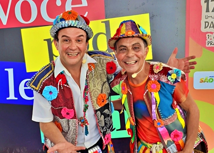 Logo na abertura da encenação as crianças são estimuladas a brincar de peteca e amarelinha e, através de quadros, a peça transcorre com a dupla relembrando outros brinquedos e brincadeiras através de divertidas cenas, curiosos personagens e animadas canções.